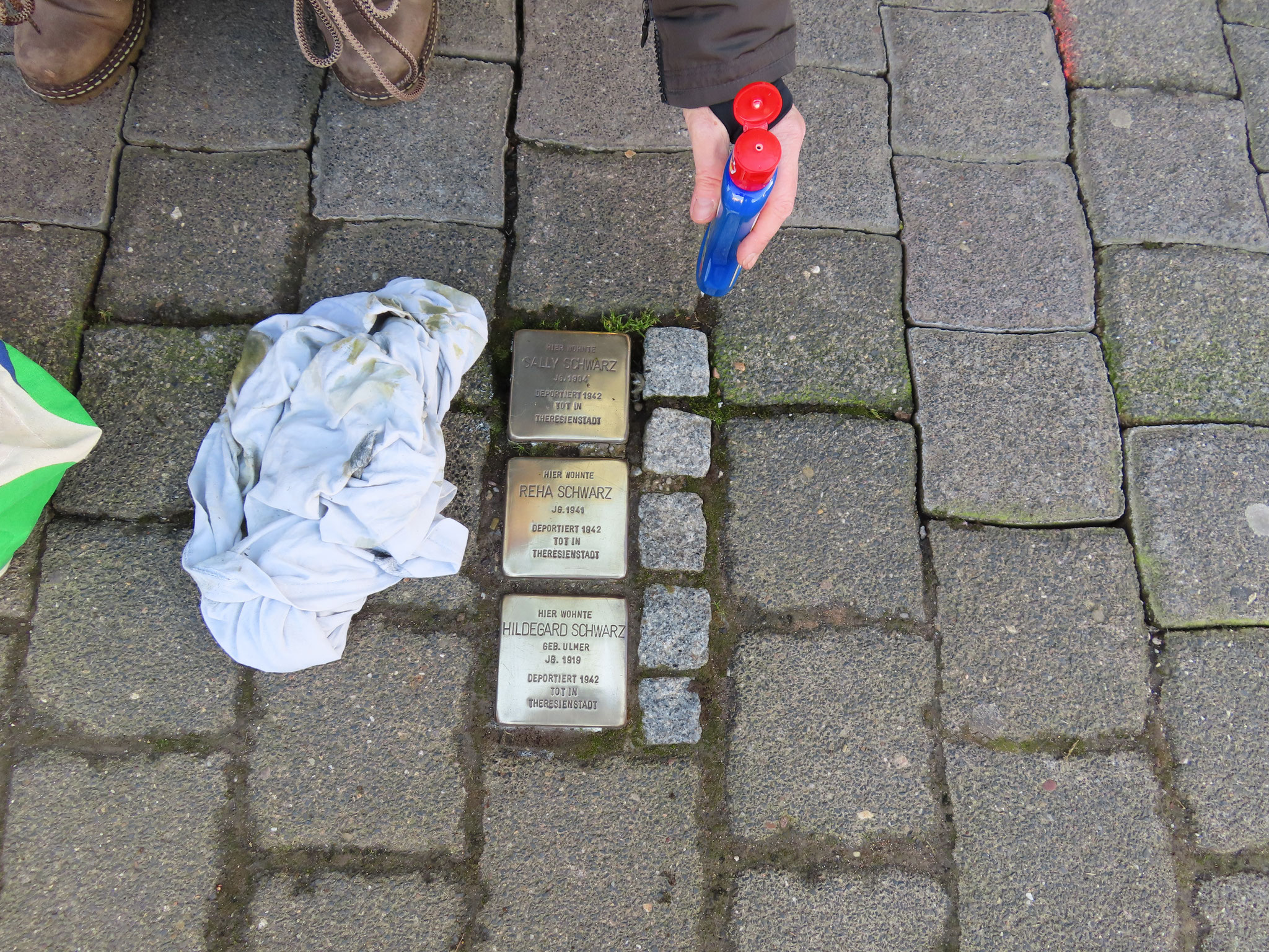Zum Gedenktag an die Opfer des Nationalsozialismus, dem 27. Januar, hatte der Geschichts-verein Erftstadt e.V. seine Mitglieder angeregt, die in Erftstadt verlegten „Stolpersteine“ wieder auf Hochglanz zu bringen. Auf Initiative von Erftstädter Bürgern waren diese zwischen 2006 und 2009 in Liblar und Lechenich vom Künstler Gunter Demnig verlegt worden. Sie erinnern an die unter dem NS-Regime verschleppten und ermordeten jüdischen Mitbürger. Die Stolper-steine in der Carl-Schurz-Straße, die während der Neugestaltung des Bürgersteiges entfernt worden waren, sind mittlerweile wieder an ihren alten Ort zurückgekehrt.