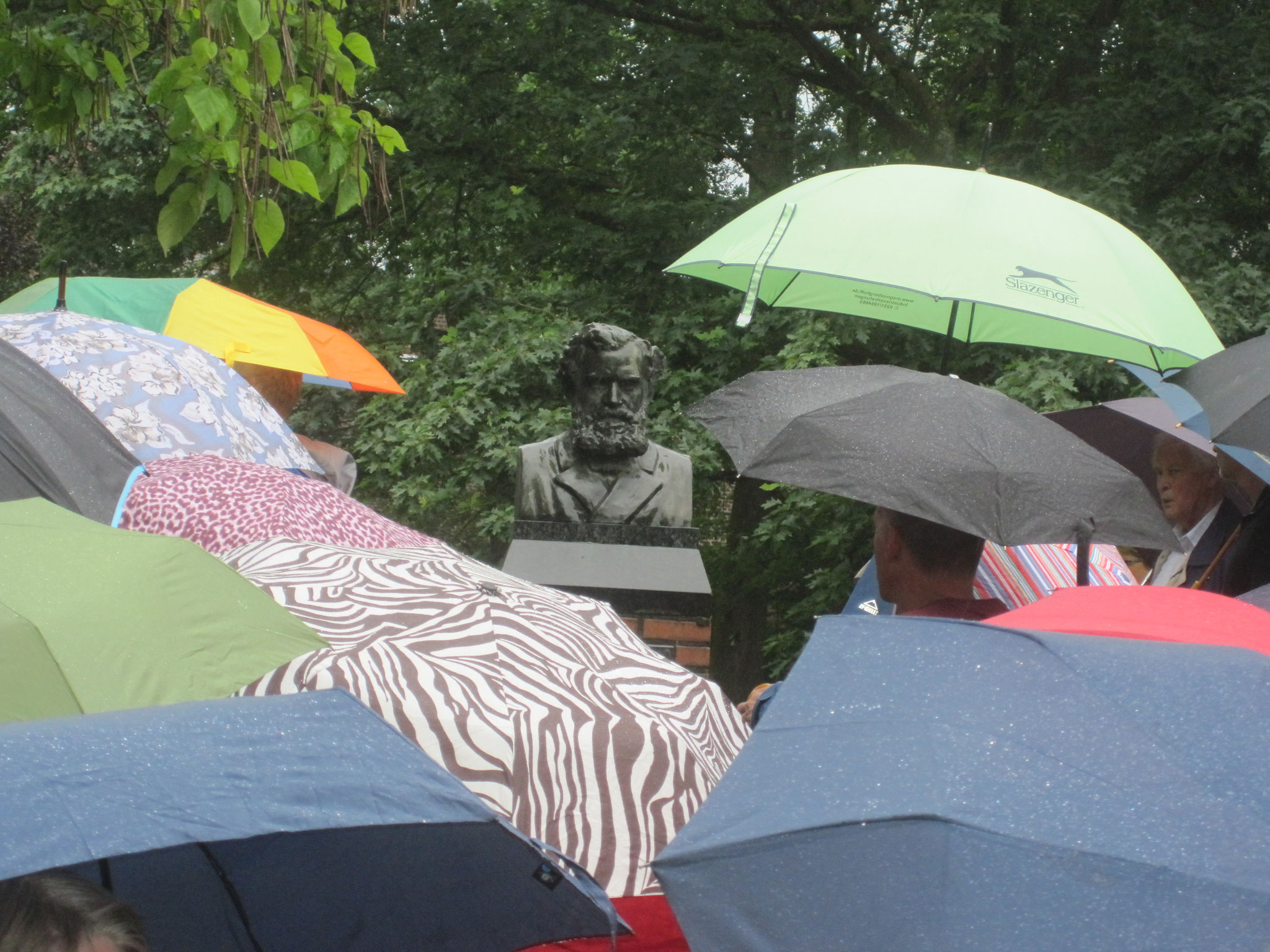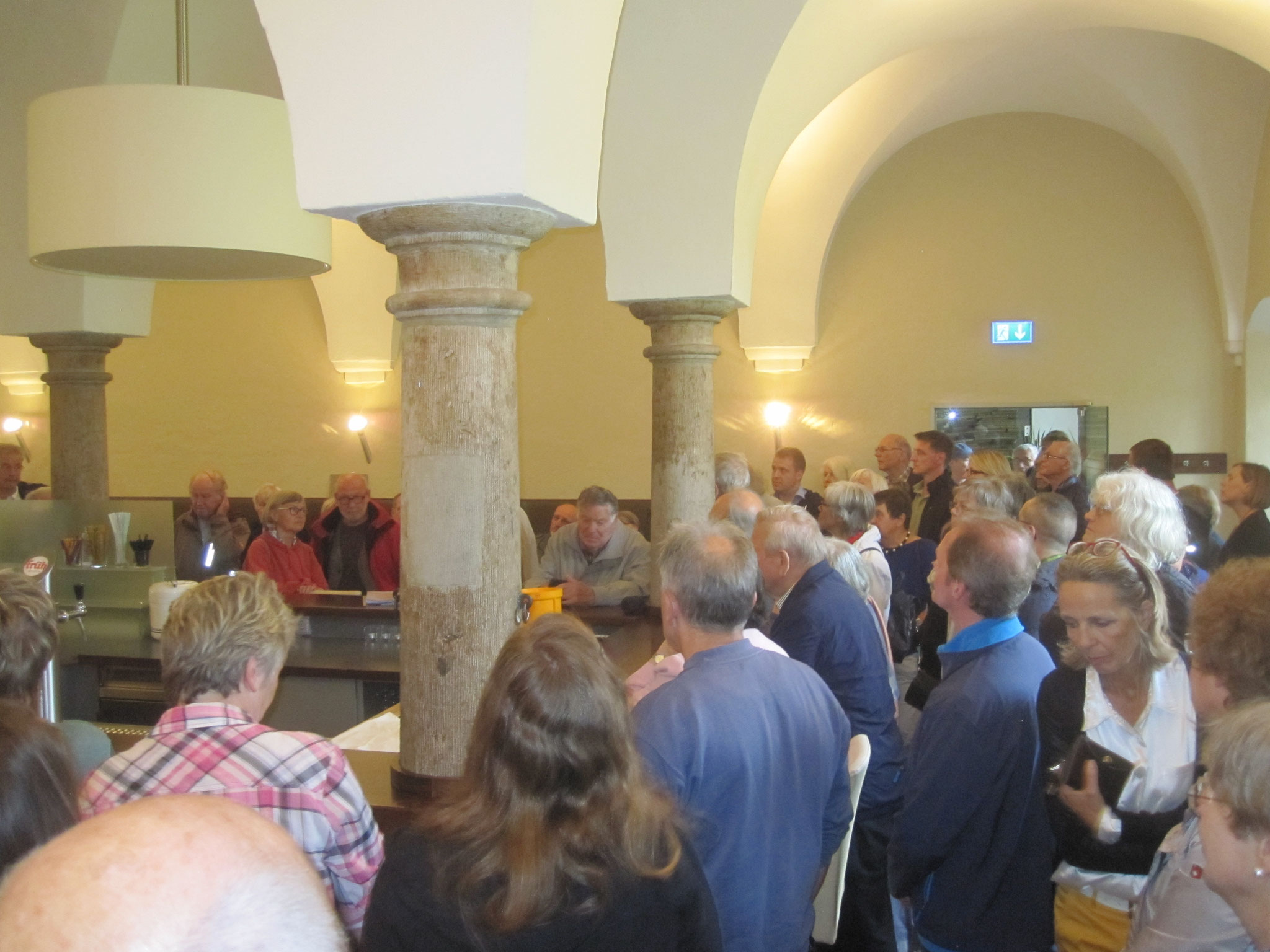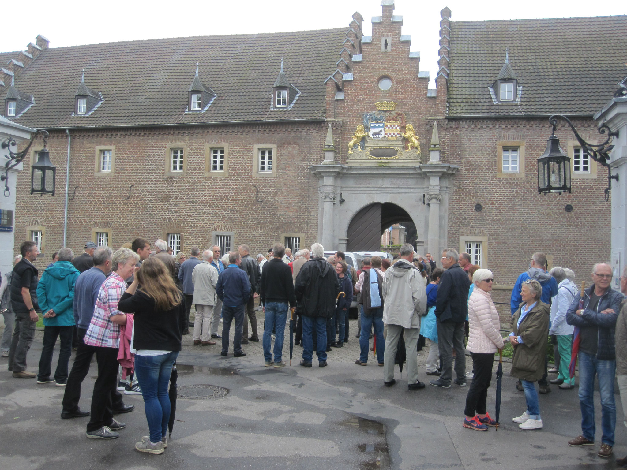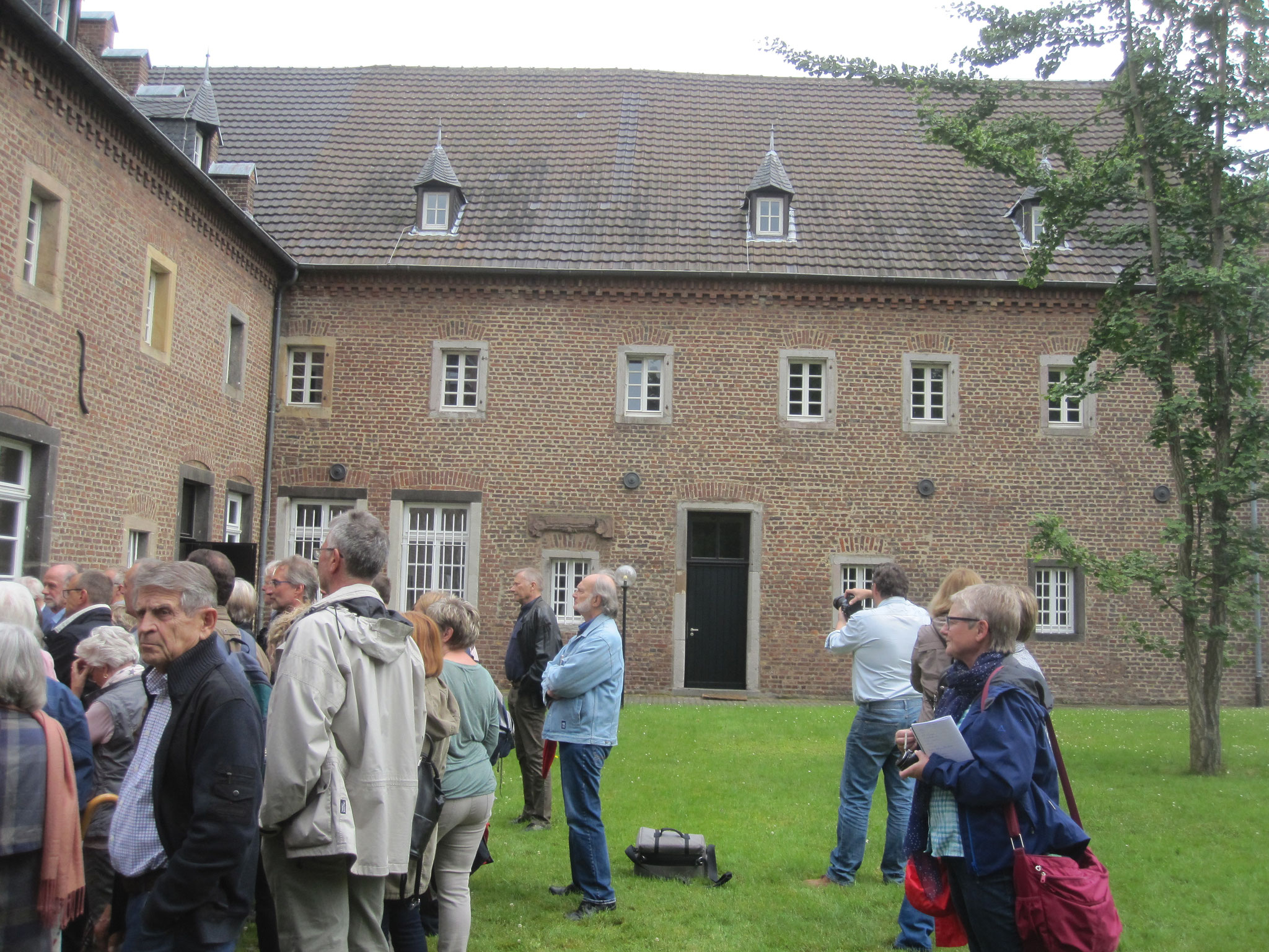 „Ich bin in einer Burg geboren. Dies bedeutet jedoch keineswegs, daß ich von einem adligen Geschlecht abgestammt sei.“ Mit diesem charakteristischen Satz aus den Lebenserinnerungen von Carl Schurz leitete Dr. Bartsch die Führung am 18.6.2016 durch das Liblar von Carl Schurz ein. Die erste Station war das Geburtshaus, die Vorburg von Schloss Gracht, wo die ca. 100 Teilnehmer der Führung einen Blick auf und in den Seitenflügel werfen konnten, mit Küche und Essraum für die Familie Jüssen / Schurz sowie die Hausangestellten. Die Ställe für Pferde bzw. Kühe waren als solche heute nur an der Raumaufteilung wiederzuerkennen.