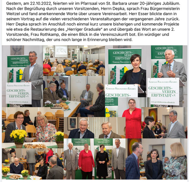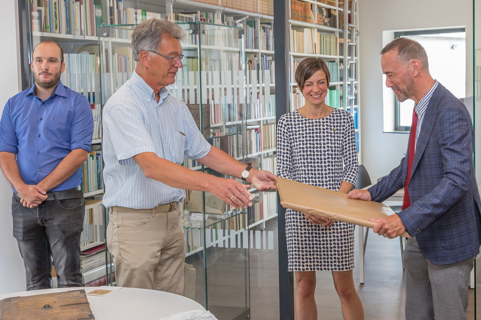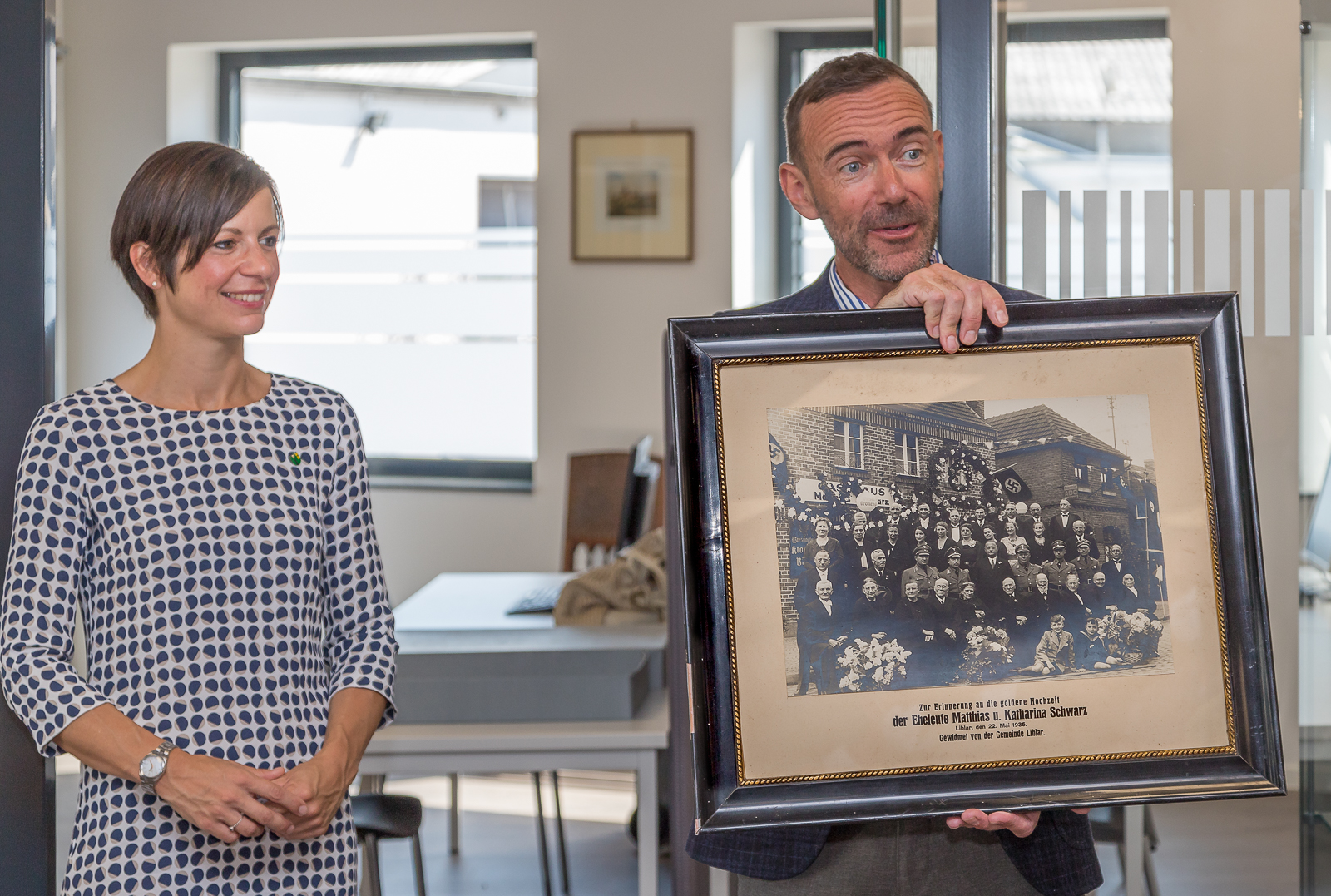 Anlässlich der Einweihung des Historischen Archivs, überreichte der Vereinsvorsitzende dem Stadtarchiv das historische Bild der Goldenen Hochzeit der Eheleute Schwarz vor dem Rööches in Liblar. Darüber hinaus präsentierte der Geschichtsverein seine Publikationen sowie seine Informations-Flyer.