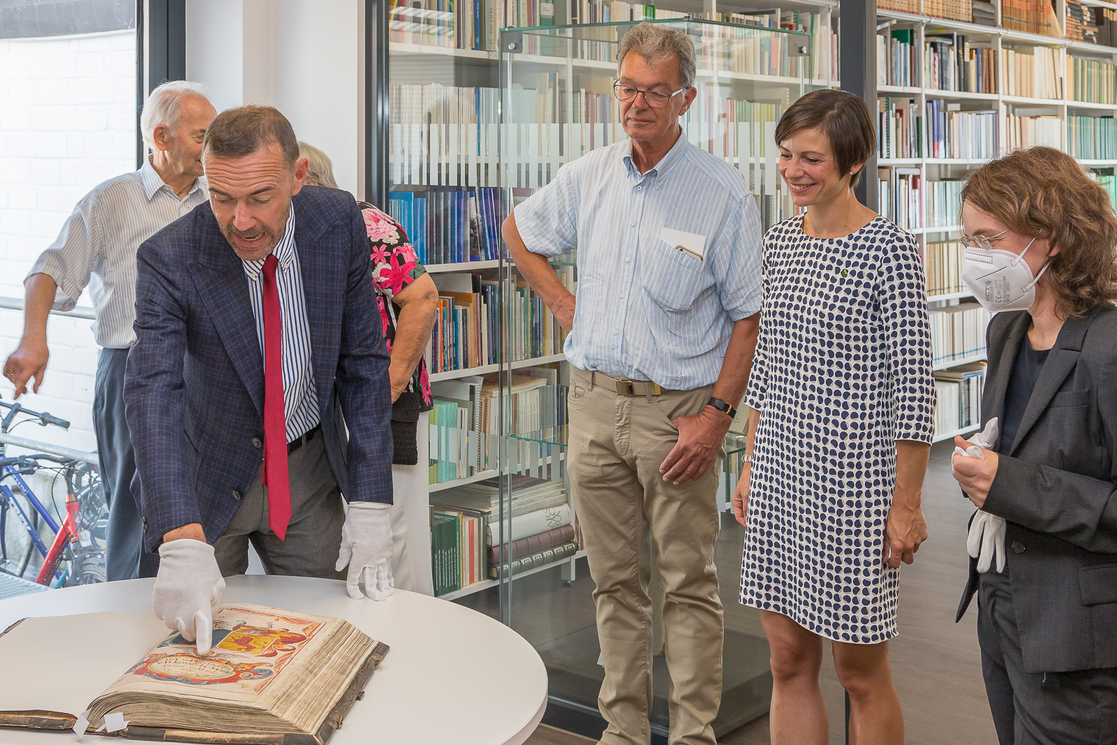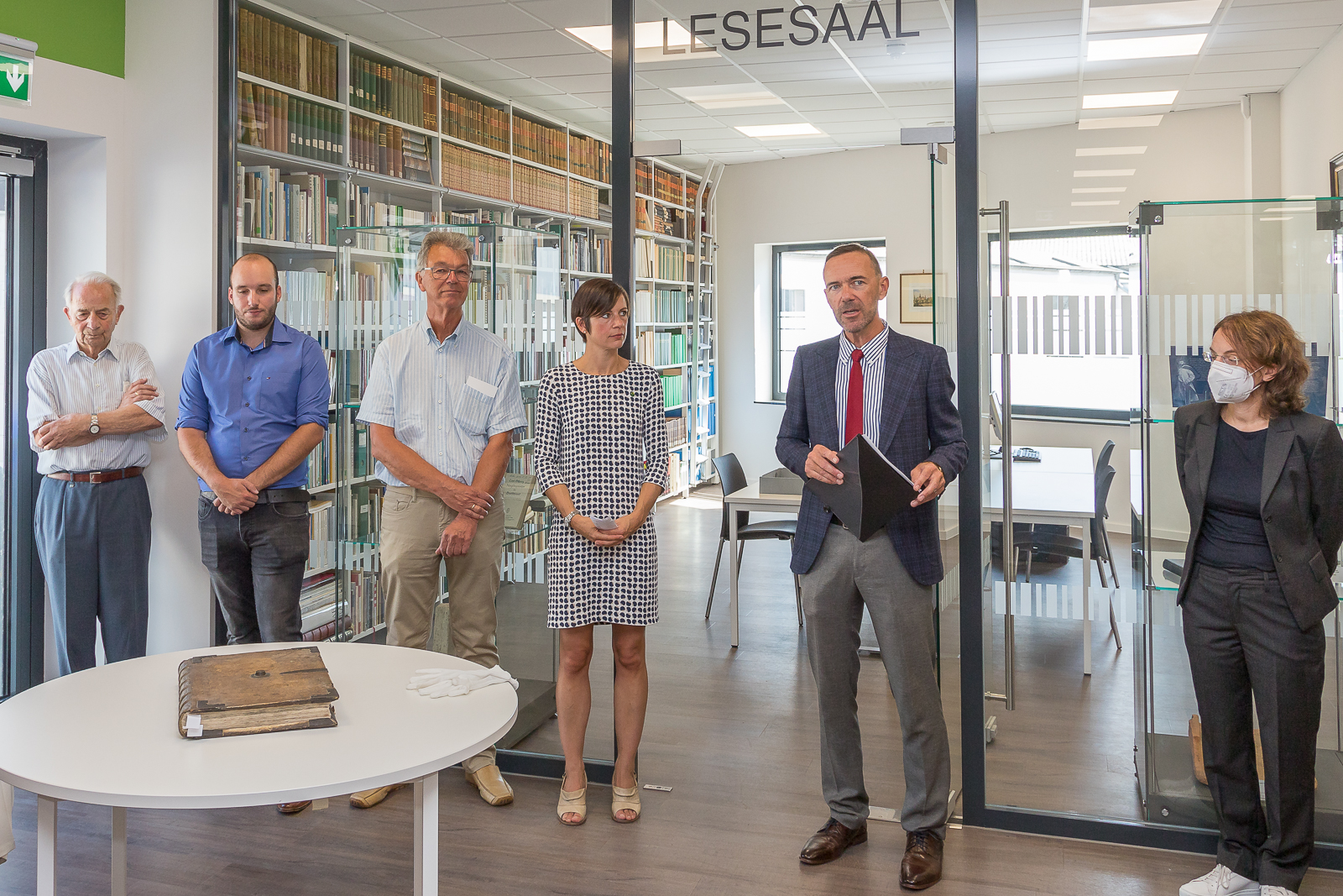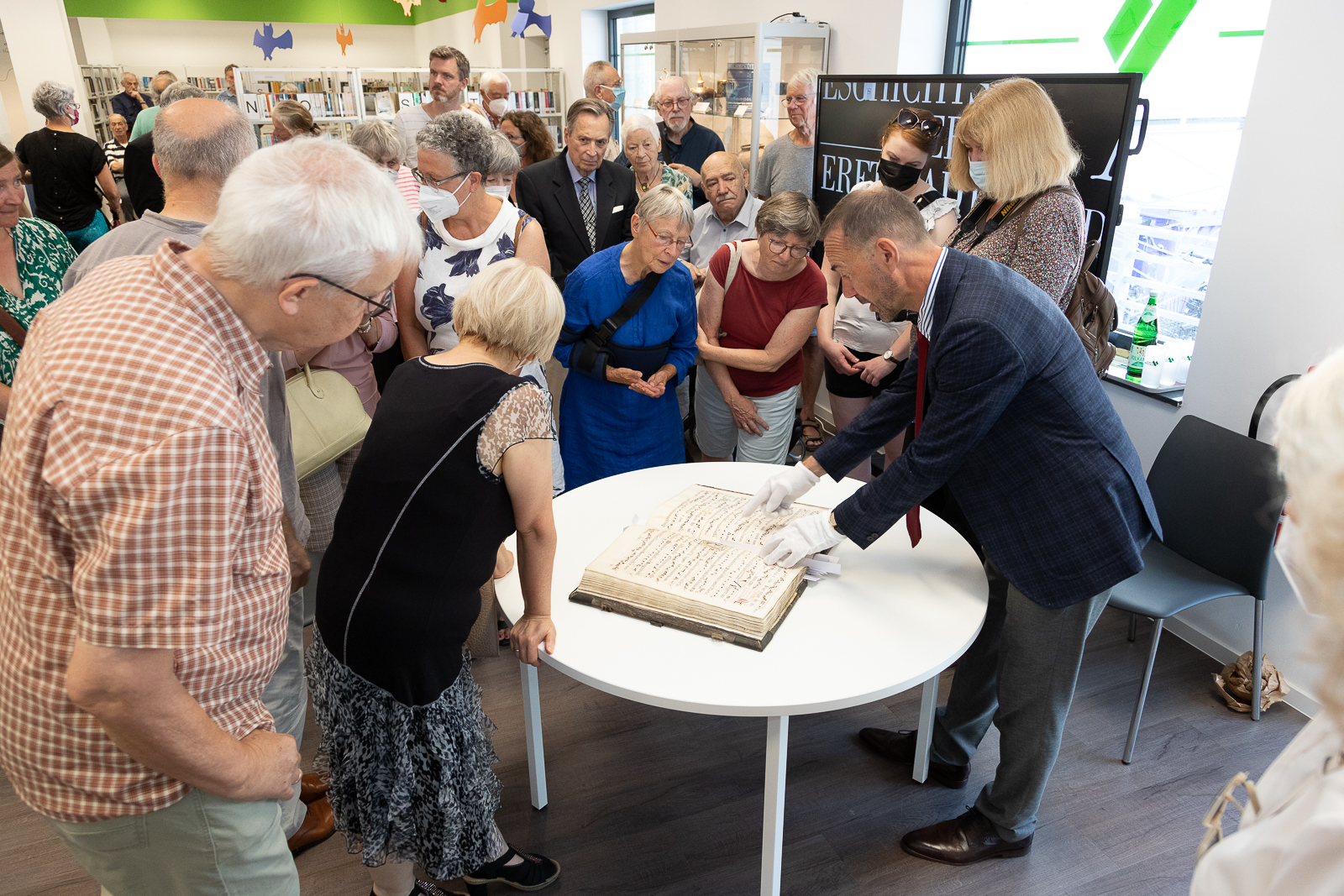 Die Vorstellung erfolgt im Beisein von Bürgermeisterin Carolin Weitzel durch den Stadtarchivar Dr. Frank Bartsch und den Vereinsvorsitzenden Thomas Depka. Ca. 50 Mitbürger schauten interessiert zu, wie die Restauratorin Anja Koschel einige besonders anschauliche Seiten aufblätterte.