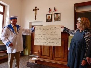 „Historischer Unterricht“, bei dem die Besucher die Rolle der Schüler übernahmen, ließ