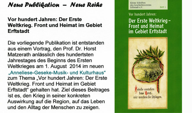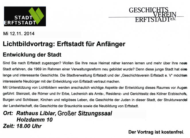Di 11.11.2014 Buchvorstellung (1. Heft der „Kleinen Schriften“ des Geschichtsvereins Erftstadt e. V.)