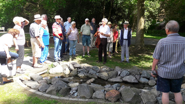 Dr. Wolf-Rüdiger Zoll führte durch den Gesundheitsgarten Frauenthal, der nicht nur den Patienten des Krankenhauses, Bewohnern des Münch-Stifts und den Gästen des Hospizes sondern auch der Öffentlichkeit zugänglich ist. Durch Natur und Erfahrungsstationen soll der ganzheitlichen Heilungs- und Genesungsprozess kranker Menschen in Ergänzung zur Schulmedizin gefördert werden. Gleichzeitig dient er auch der Erholung und Erbauung der Bevölkerung.
