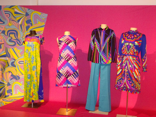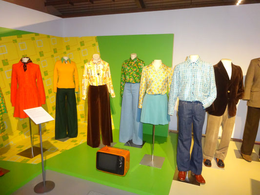 Die Ausstellung zeigte wie sich die Mode vom Ende der 50er Jahre im strengen hoch geschlossenen Stil mit schweren Stoffqualitäten zur bunten beschwingten Mode der 60er Jahre entwickelte. So mancher erinnerte sich an Schlaghosen und Cordanzüge, Miniröcke und Minikleider. Astronauten- und Ethnolook waren zu bestaunen sowie der bunte Hippielook und der beliebte Armeeparka der Protestbewegung. So manches Kleidungsstück hätte dem eigenen Kleiderschrank entstammen können, andere hingegen gingen seinerzeit über den eigenen Geldbeutel hinaus.